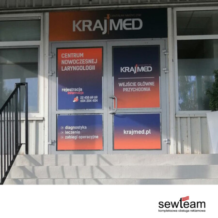 - Oklejanie witryn i przeszkleń: Folie szronione (efekt mrożonego szkła), One Way Vision oraz dekoracyjne grafiki okienne.